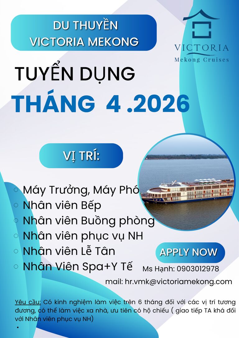 Du thuyền Victoria Mekong là du thuyền cao cấp đầu tiên và lớn nhất khu vực sông Mekong, du thuyền Victoria Mekong hứa hẹn một trải nghiệm độc đáo trên hành trình thưởng ngoạn cảnh sắc và khám phá nhịp sống nơi miền Tây sông nước.