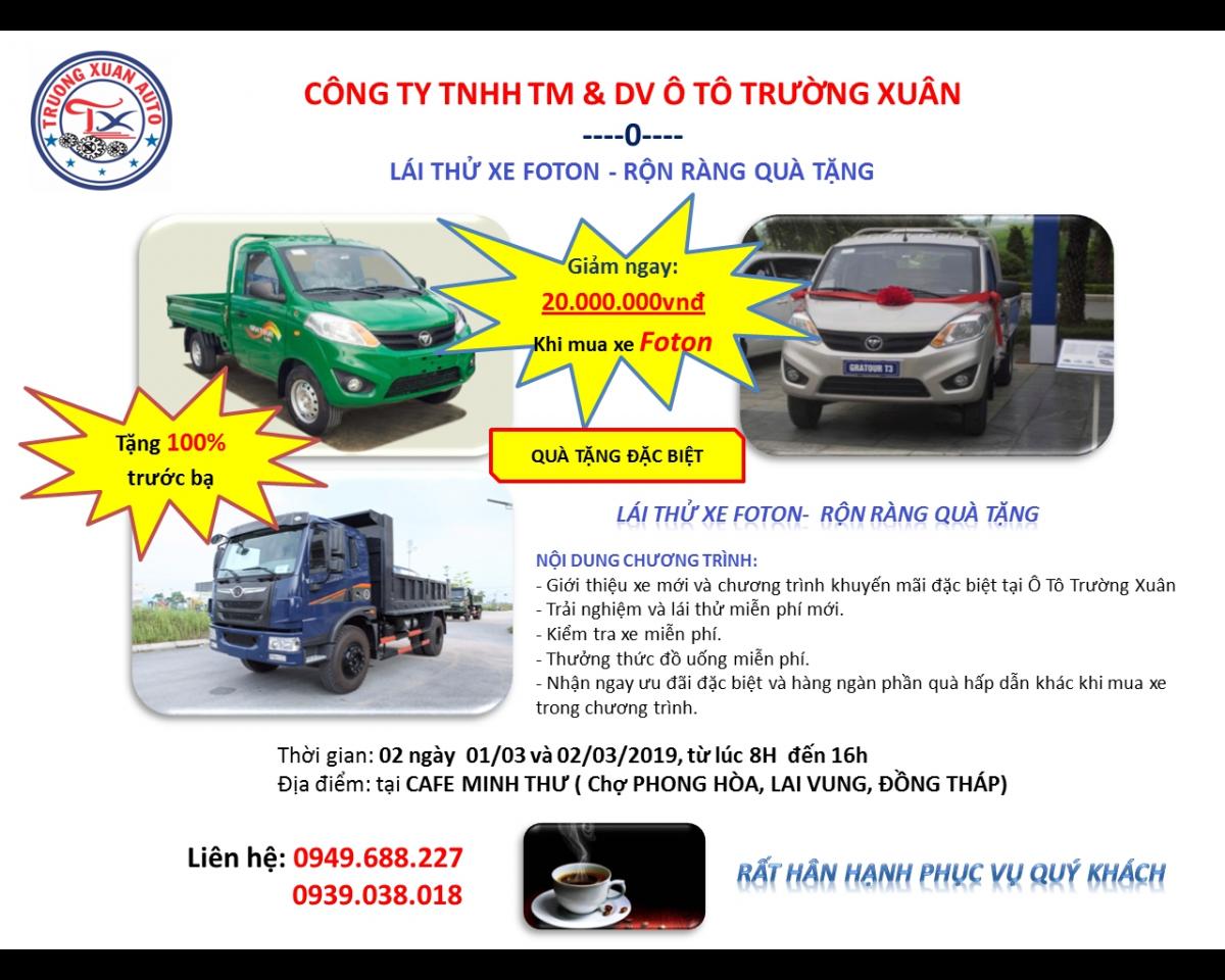 Công ty Ô tô Trường Xuân chuyên cung cấp các loại xe tải chassi, thùng lững, thùng bạt, thùng kín, xe ben, xe chuyên dụng,...