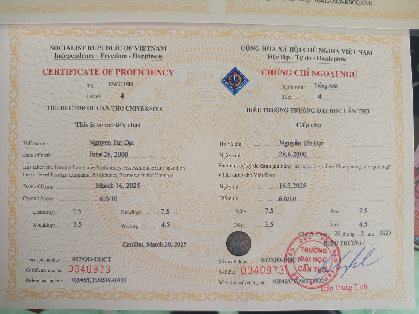 Đơn vị đào tạo: Trung tâm ngoại ngữ Đại Học Cần Thơ